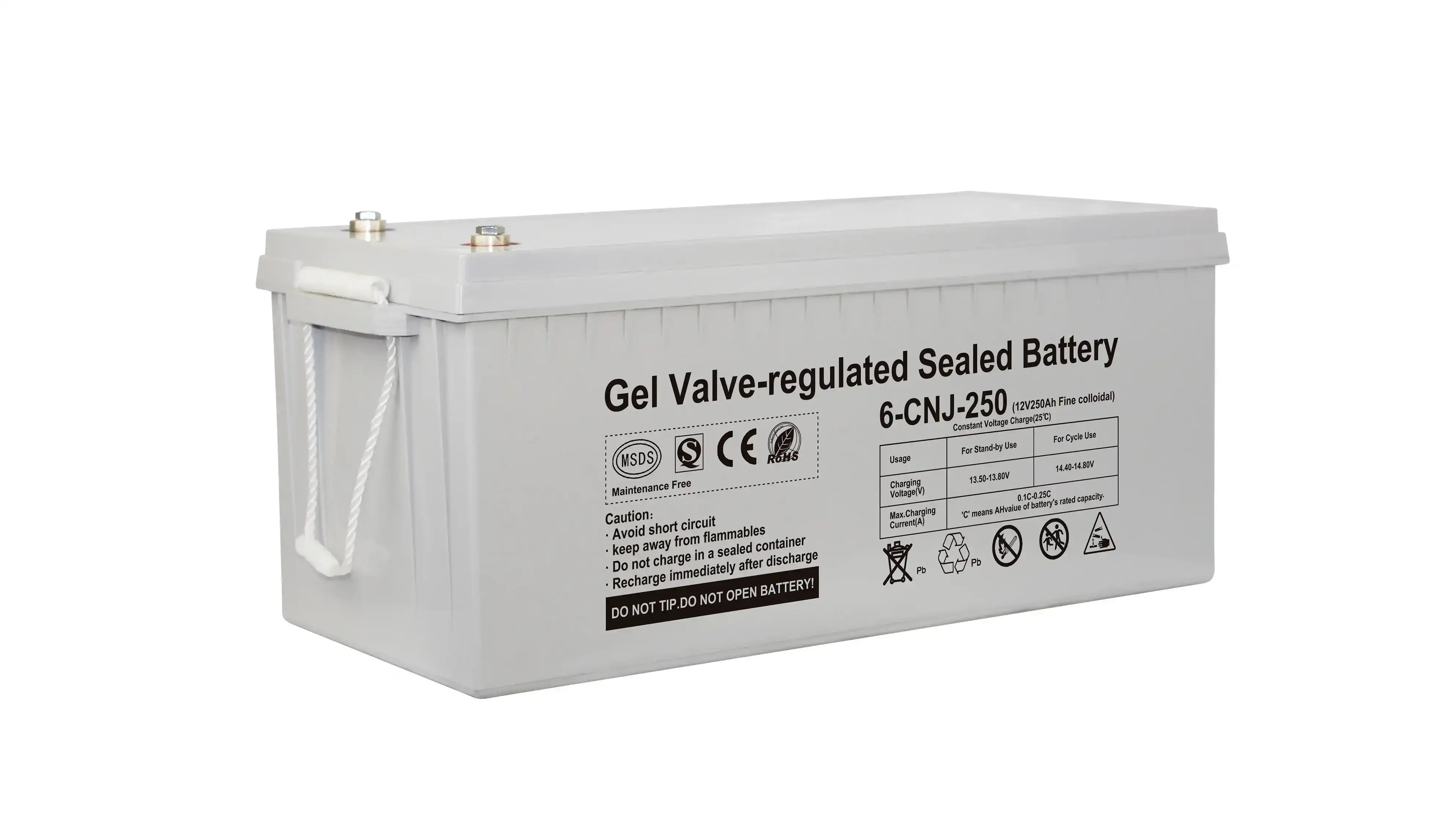 Model Number: MF12V250Ah Name: deep cycle 12V 250ah battery Battery Type: Deep Cycle Sealed Gel Cycle Life: 50%DOD 1422 times The discharge rate: C10/C20 Warranty:2/ 3years